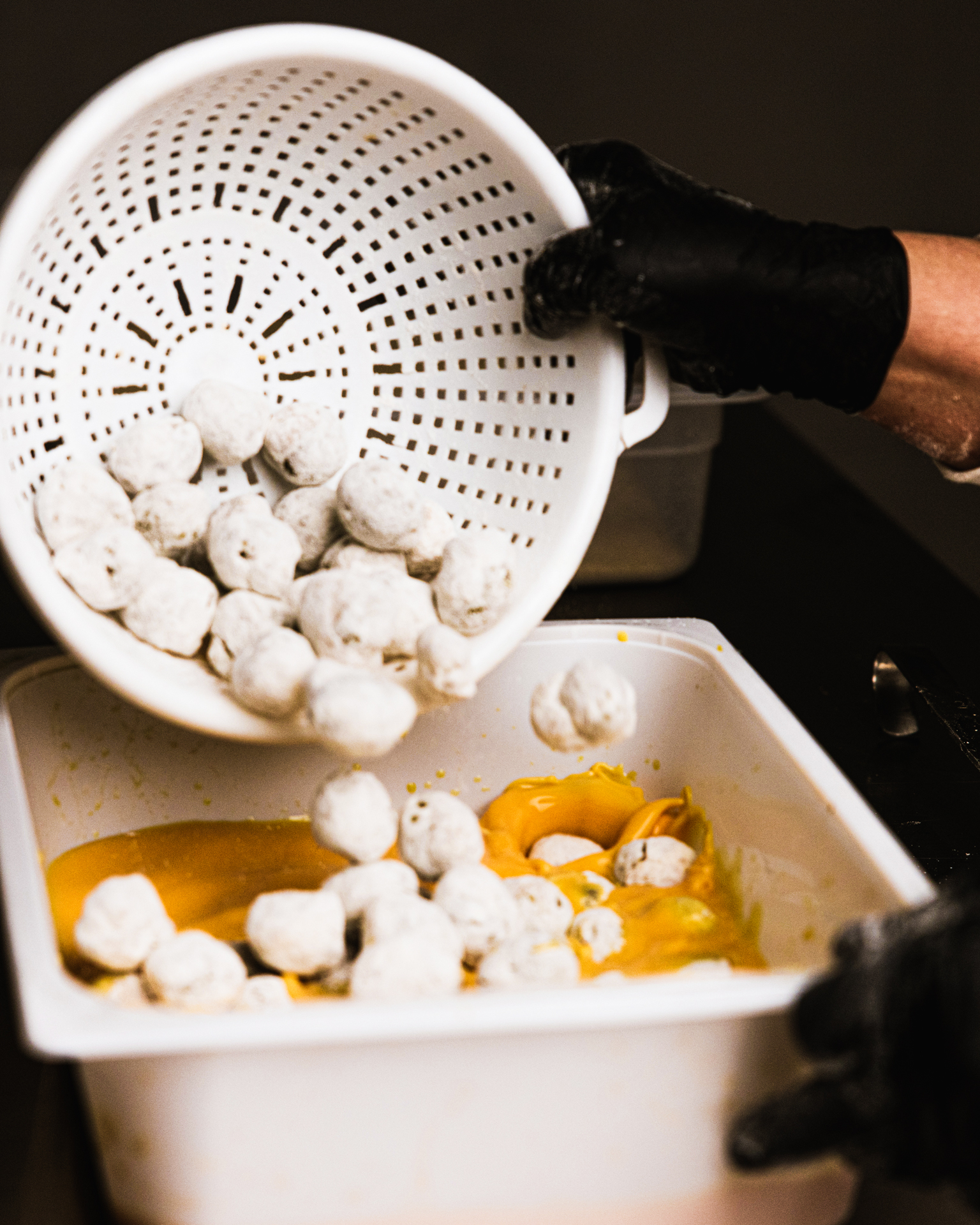 Il tutto è avvolto in una panatura dorata e croccante, che esalta ogni morso e regala una piacevole esperienza di consistenze.